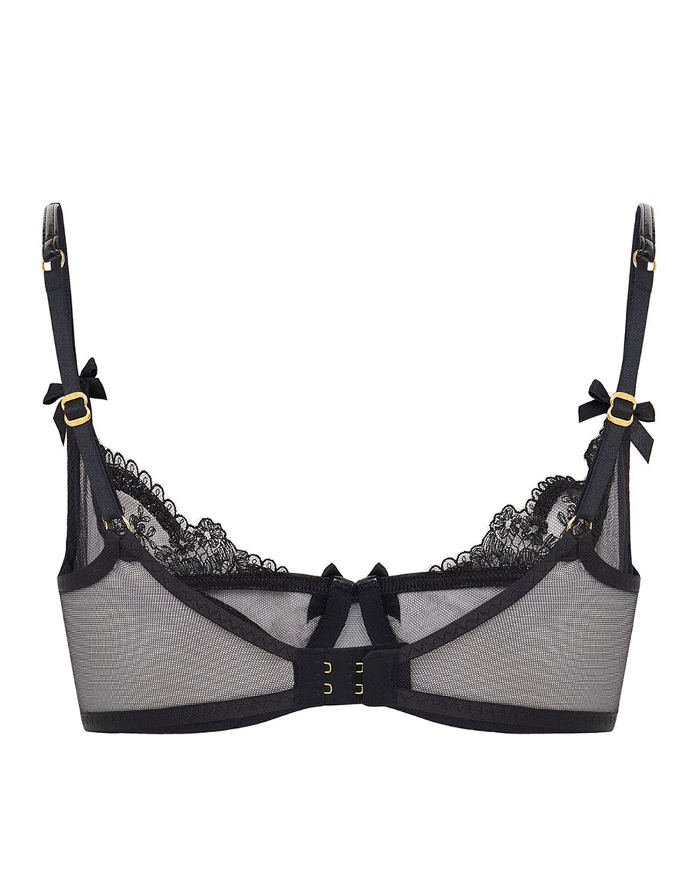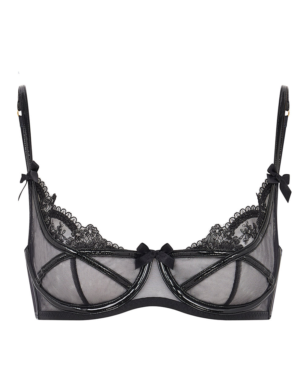 One point we can’t reiterate enough: no one does bedroom-dressing quite like Agent Provocateur. Their seductive designs blend elegance and allure, creating iconic pieces. Enter Charlotia—a range that’s dark, dramatic, and irresistibly sensual. The black demi-cup bra features floral embroidery, sheer tulle cups for support, PVC binding, and gold-plated hardware. Pair with the Charlotia range for ultimate vampy sophistication.