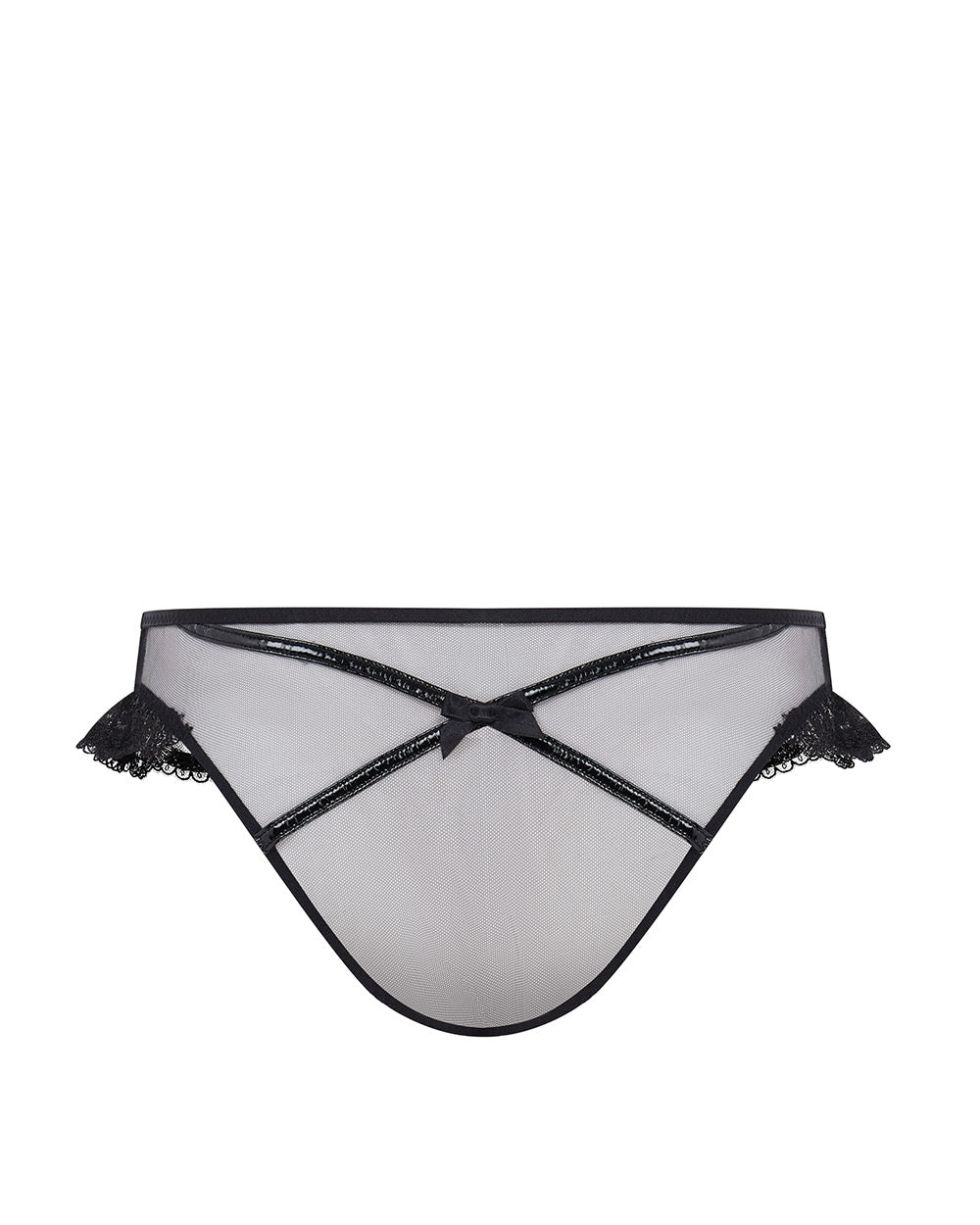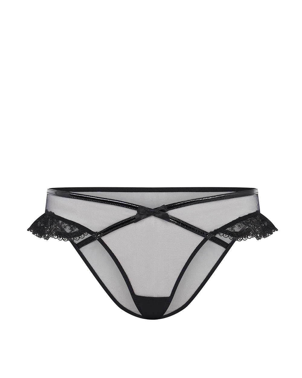 One point we can’t reiterate enough: no one does bedroom-dressing quite like Agent Provocateur. Their seductive designs blend elegance and allure, creating iconic pieces. Enter Charlotia—a dark, dramatic, and irresistibly sensual range. The black brief features sheer tulle, PVC binding with cross details, floral embroidery at the hips, and satin bows.