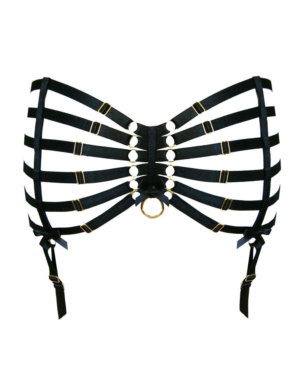 Season after season, Bordelle takes the art of seduction to the next level with their S&M-inspired collections. With body-conscious silhouettes and meticulous construction - the designs always feature well-crafted materials and hardware. This webbed suspender belt, which is worn on the hips, is made with 37 individual 24k gold-plated components and pairs perfectly with stockings or garters.