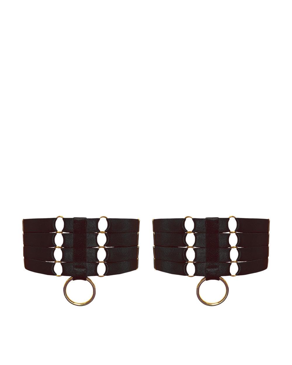 Season after season, Bordelle takes the art of seduction to the next level with their S&M-inspired collections. With body-conscious silhouettes and meticulous construction - the designs always feature well-crafted materials and hardware. These webbed garters are the perfect finishing touch to your boudoir look as they can be worn alone, attached to suspender clips, or over stockings.