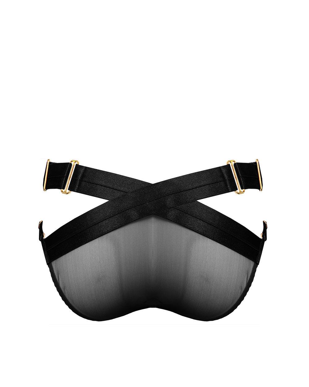 Season after season, Bordelle takes the art of seduction to the next level with their S&M-inspired collections. With body-conscious silhouettes and meticulous construction - the designs always feature well-crafted materials and hardware. This sheer brief can be worn with stockings, garters or on its own as the adjustable hip straps can be removed.