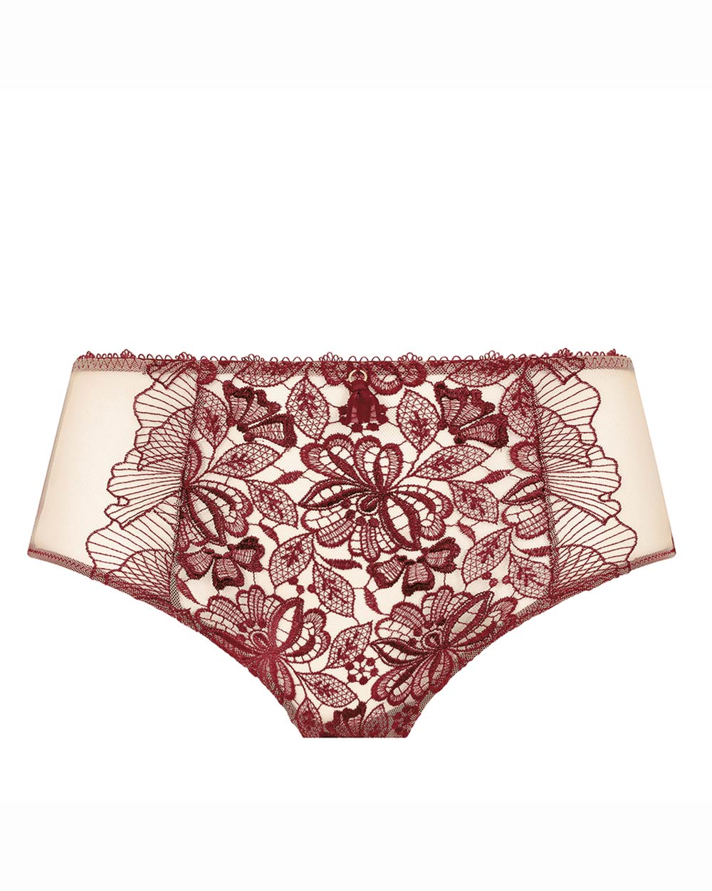 Renowned for its supremely feminine and elegant French style, Empreinte produces covetable lingerie season after season. The brand's Agathe collection, with its combined vintage and contemporary vibes, illustrates the key trend of mixing styles. The vertically-placed embroidery and the guipure lace-effect front ensure the desired level of opacity. With their tattoo effect, this full brief has an elegant and on-trend appeal.