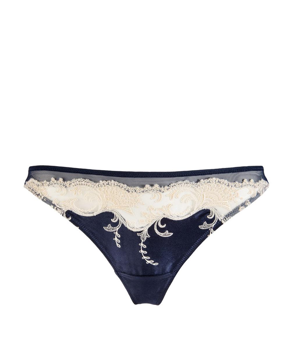 When it comes to magnifique French lingerie design, Lise Charmel maintains the standard of luxury. The Splendeur Soie collection is beautiful, elegant and timeless. This gorgeous tanga has a silk satin front inlaid with embroidery on tulle and a sheer tulle back with a seamless folded edge and satin bow.