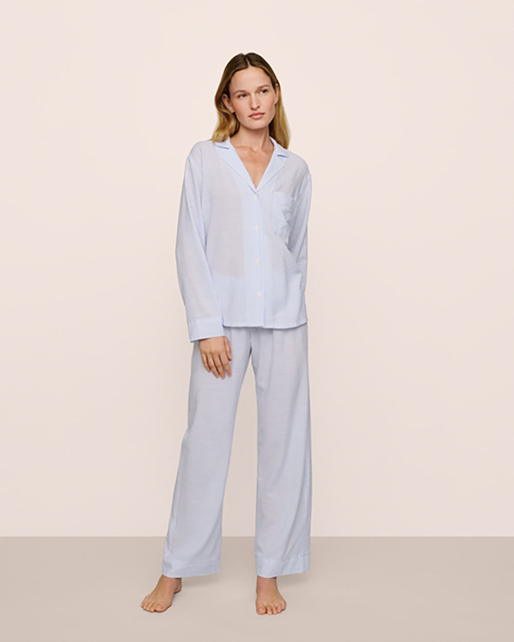 - Contrast piping inspired by classic men’s pyjamas