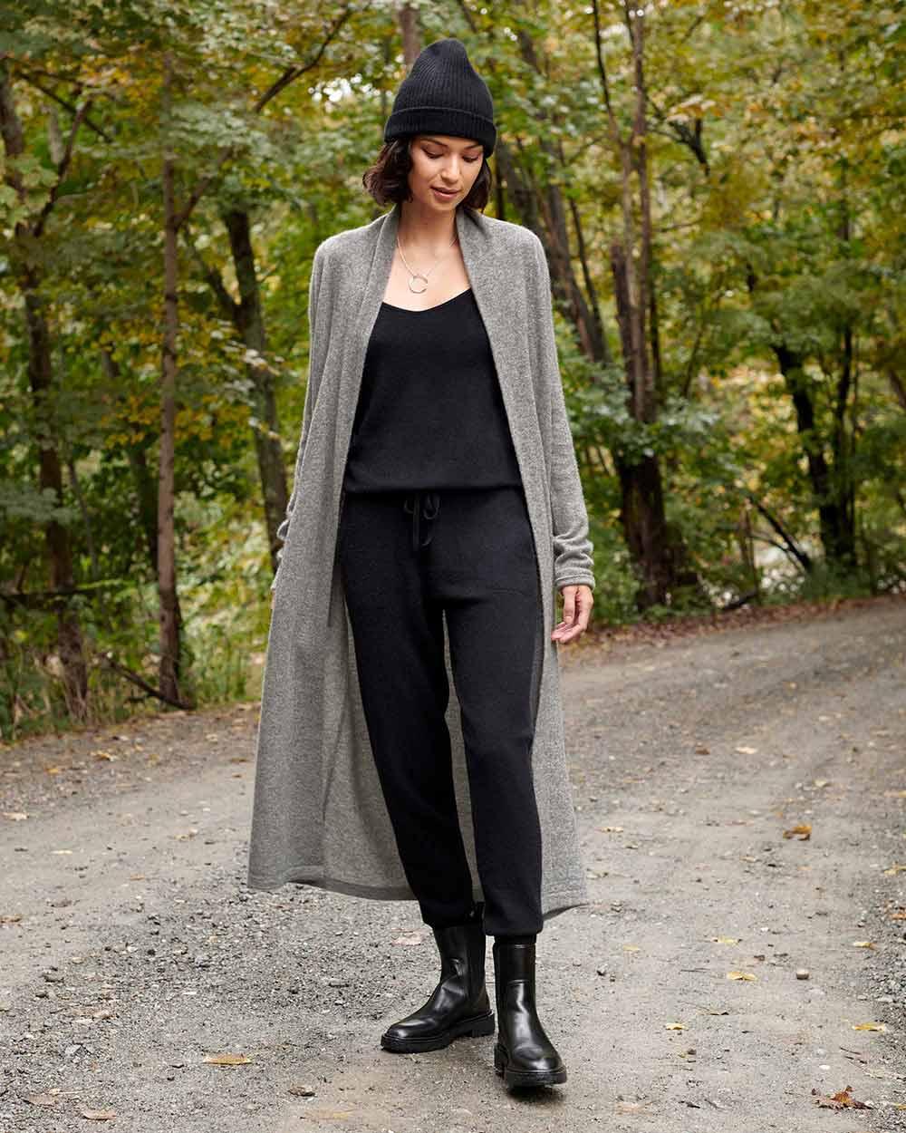 Do one thing and do it well. That’s the unofficial mission for White + Warren—our go-to brand for luxurious cashmere knits. This long cashmere robe, which is one of our favorites, is ideal for lazing about the house in style, but also looks fabulous with a pair of jeans. We love its large patch pockets and classic sleek fit that beautifully skims the body..