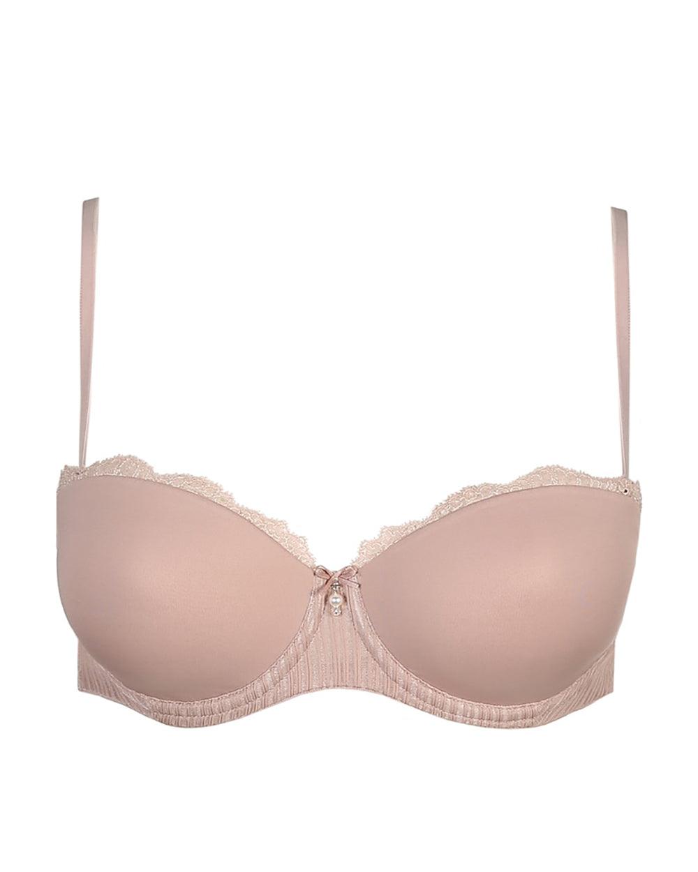 Ultra feminine and delicately demure, Marie Jo’s Sofia collection is beyond romantique. By incorporating French Leavers lace, modern plissé tricot from their Belgian manufacturer and soft, semi-mat microfiber, these pieces are both easy to wear and utterly unforgettable. This strapless bra is an essential underpinning for bandeau tops, jumpsuits and strapless dresses—and ideal for brides.