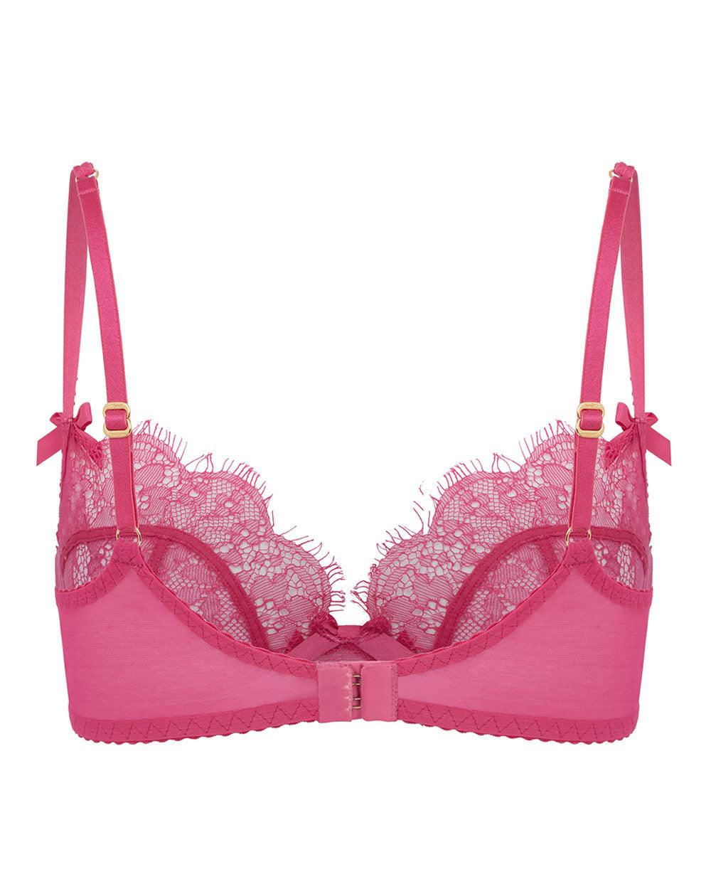 One point we can’t reiterate enough: No one does bedroom-dressing quite like Agent Provocateur. As the brand’s flagship collection, Lorna Lace is all about romance with irresistibly feminine details throughout every piece. We’re absolutely loving this bright fuchsia lace bra from the collection, which features French seam detailing and scalloped edges throughout.