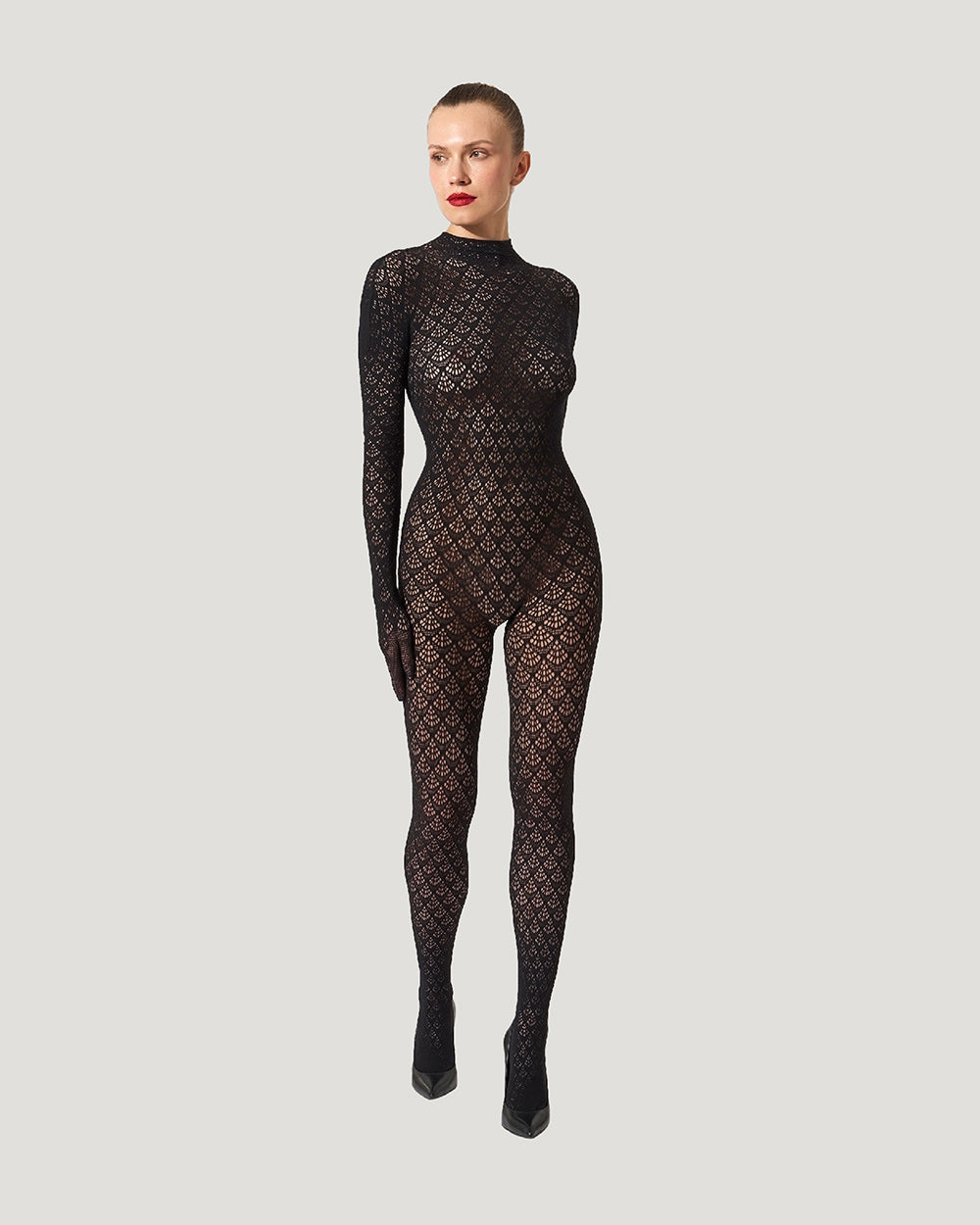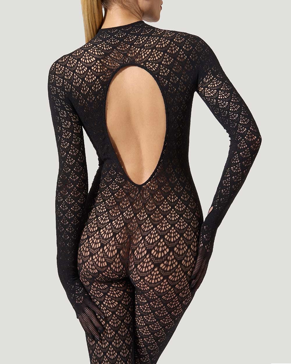 Those who appreciate fine lingerie understand why Wolford is such an important brand. For over 70 years, it’s led the way in innovative legwear and bodywear. This slim-fit catsuit sculpts with a scale-like pattern and matte finish. Made from recycled ECONYL® yarns, it features a high neck, built-in feet, and gloves with wrist openings, allowing for versatile styling.