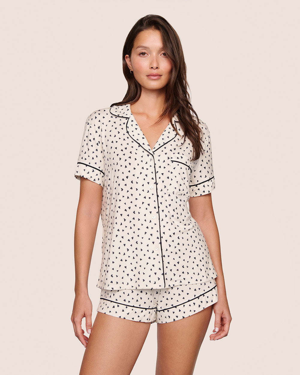 Eberjey launched in 1996 with a pair of boyshorts—and women everywhere went wild. Now a celebrity favorite, the Gisele Heart to Heart relaxed short set is crafted from buttery-soft TENCEL™ Modal with a hint of stretch. This très chic duo features contrast piping, a relaxed fit, and non-toxic OEKO-TEX® dyes.